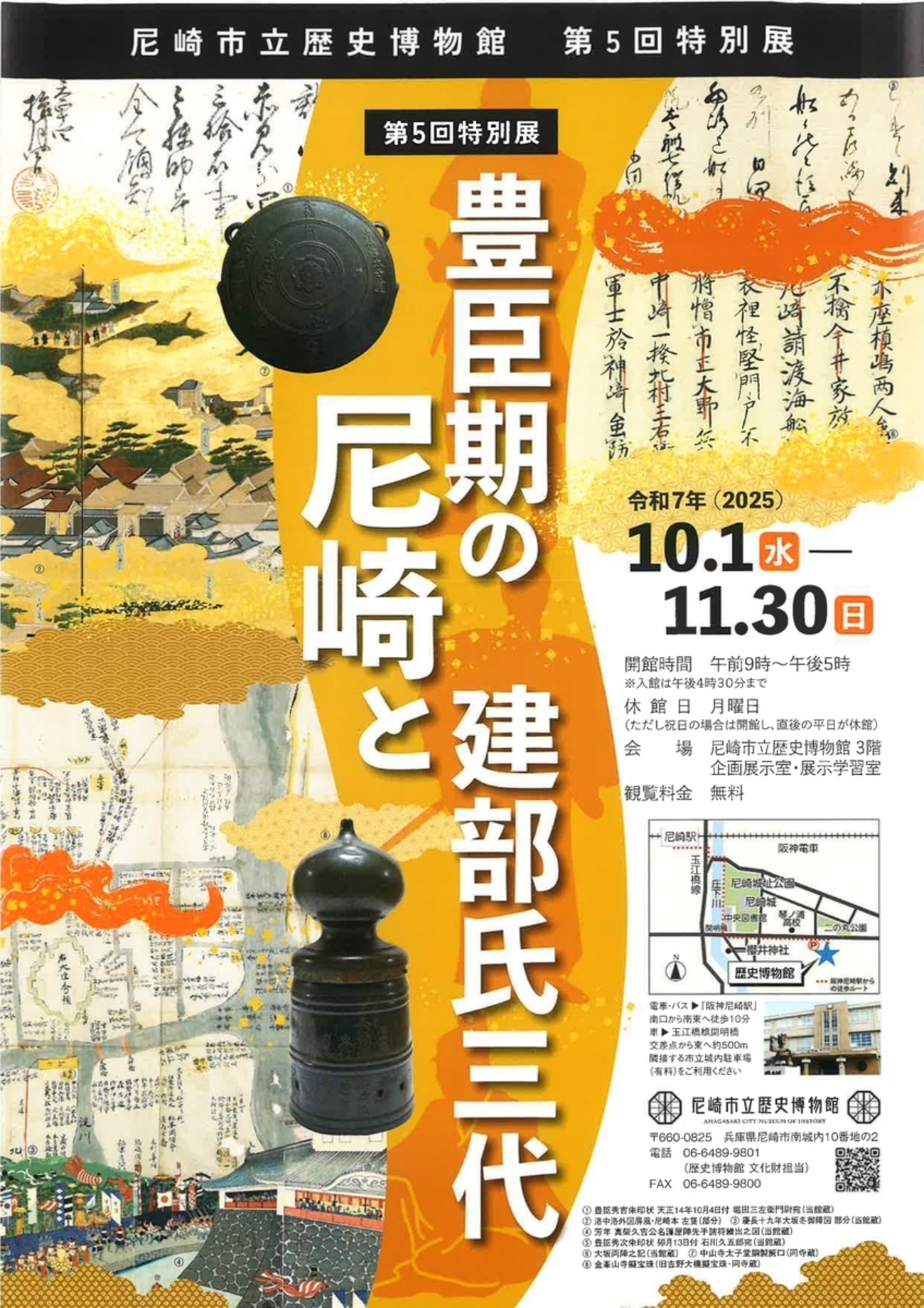 期間 現在、尼崎市立歴史博物館(兵庫県尼崎市)において第5回特別展「豊臣期の尼崎と建部氏三代」が開催中です。11月30日(日)まで、入場無料。 |