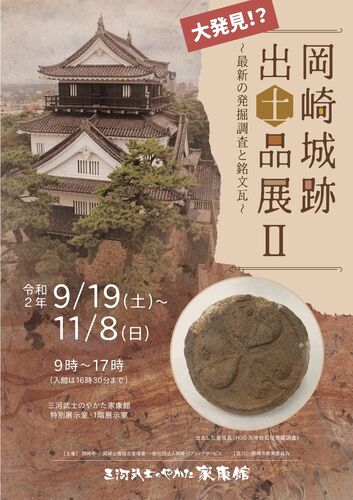 9月19日(土)から、愛知県岡崎市の三河武士のやかた家康館において企画展「大発見!? 岡崎城跡出土品展Ⅱ ~最新の発掘調査と銘文瓦~」が開催されます。