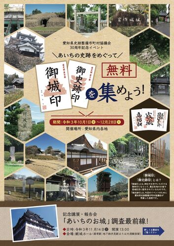 10月1日より、愛知県史跡整備市町村協議会30周年記念イベント「あいちの史跡をめぐって御城印・御史跡印を集めよう!」が開催されます。