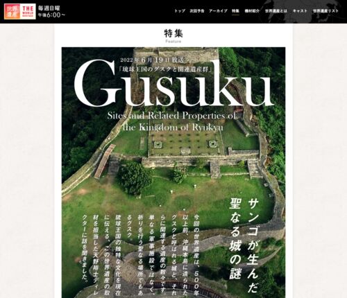 毎週日曜日に放送されているTBS「世界遺産」(18時〜18時半)で6月19日、沖縄の「琉球王国のグスク及び関連遺産群」が特集されます。