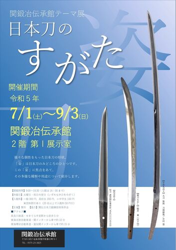 7月1日(土)から9月3日(日)までの間、関鍛冶伝承館(岐阜県関市)においてテーマ展「日本刀のすがた」が開催されます。