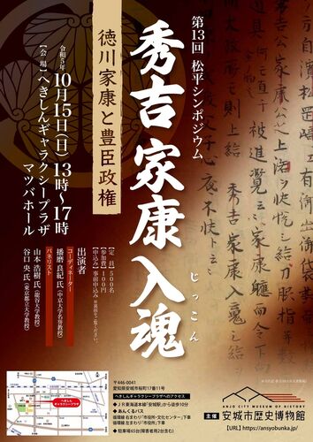 10月15日(日)、へきしんギャラクシープラザにおいて「第13回松平シンポジウム〈秀吉家康入魂ー徳川家康と豊臣政権‐〉」が開催されます。