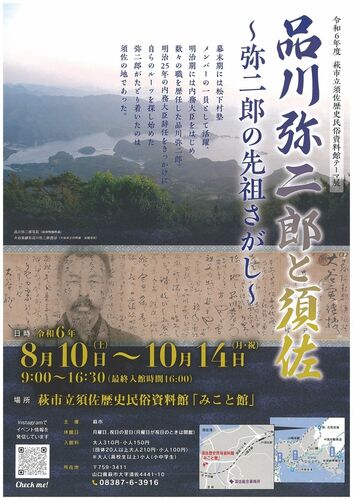 現在、須佐歴史民俗資料館「みこと館」(山口県萩市)において令和6年度 萩市立須佐歴史民俗資料館テーマ展「品川弥二郎と須佐 ~弥二郎の先祖さがし~」が開催中です。10月14日(月・祝)まで。