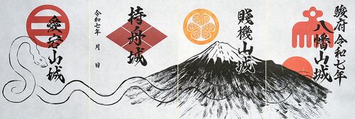 来年1月6日(月)から、駿府城公園おでんやおばちゃん(静岡県静岡市)において愛宕山城、持舟城、賤機山城、八幡山城の新作御城印「駿府 令和七年」が発売されます。1セット1600円。