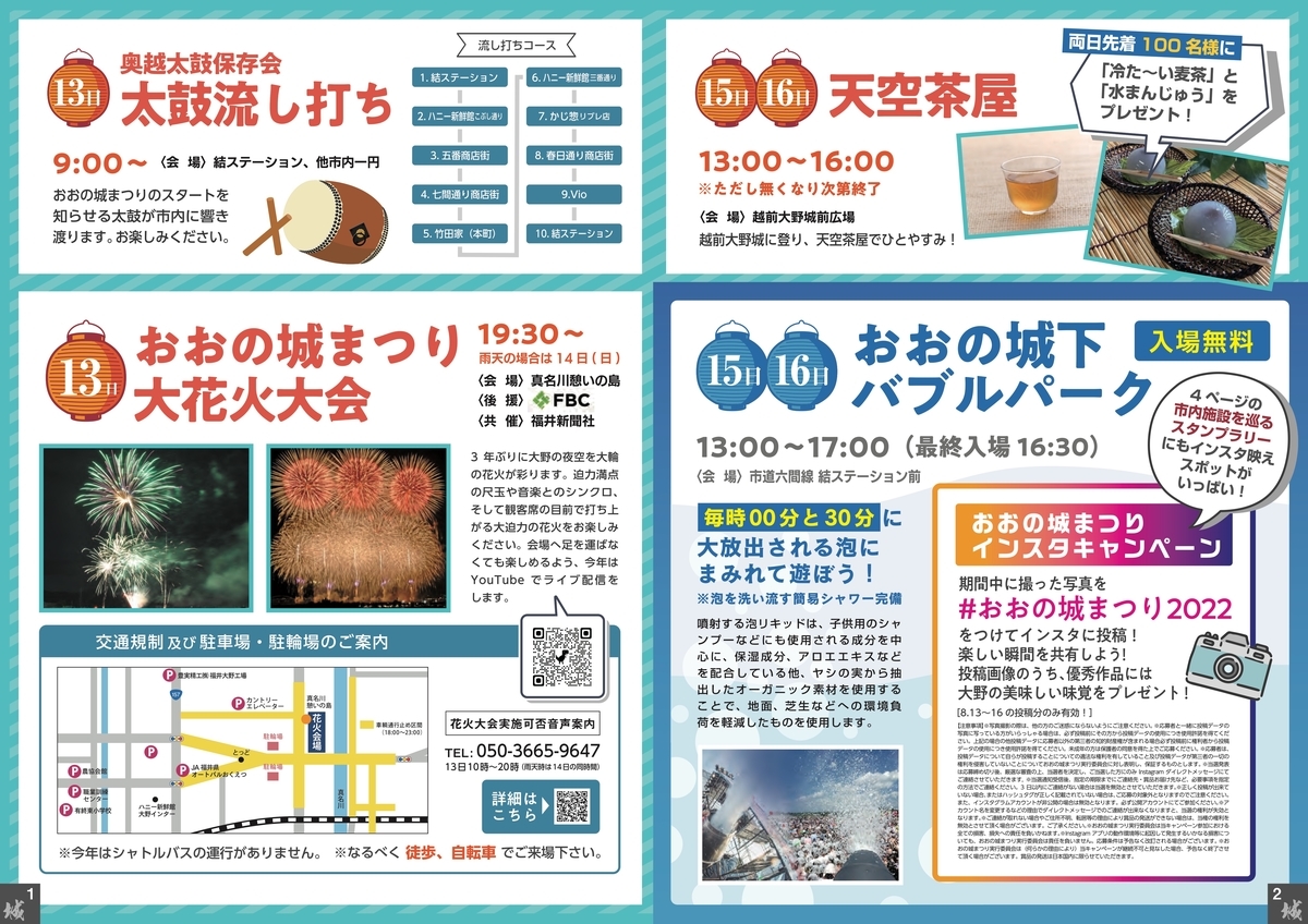 8月15日・16日の2日間、3年ぶりに「おおの城まつり」が開催されます。