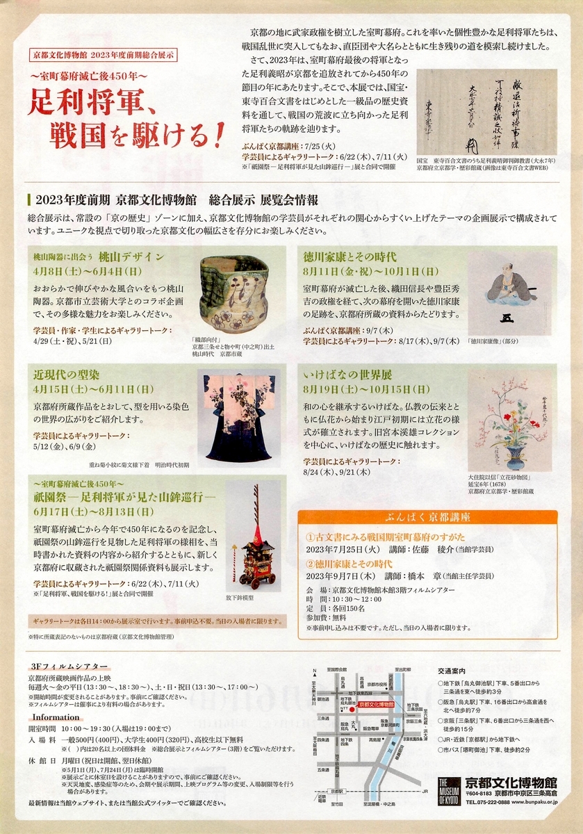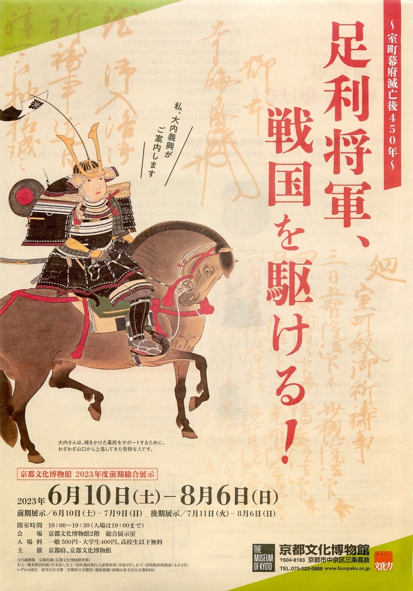 6月10日(土)から8月6日(日)の間、京都文化博物館において2023年度前期総合展示「〜室町幕府滅亡後450年〜 足利将軍、戦国を駆ける!」が開催されます。
