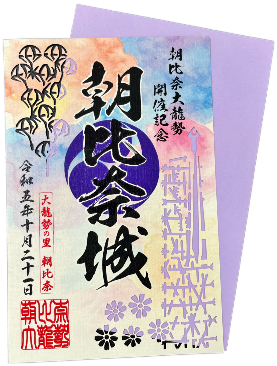 開催を記念して龍勢打ち上げ台や落下傘が切り絵でデザインされた特別仕様の御城印を販売します。