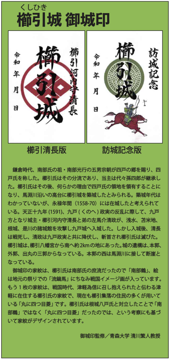 12月27日(水)から、まちの茶屋しゃべるばあ~において櫛引城の御城印が発売されます。