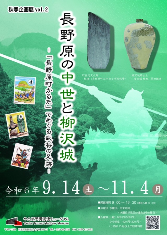 9月14日(土)から11月4日(月)までの間、長野原町やんば天明泥流ミュージアム(群馬県長野原町)において秋季企画展「長野原の中世と柳沢城 ―『長野原町かるた』でめぐる武将の足跡―」が開催されます。