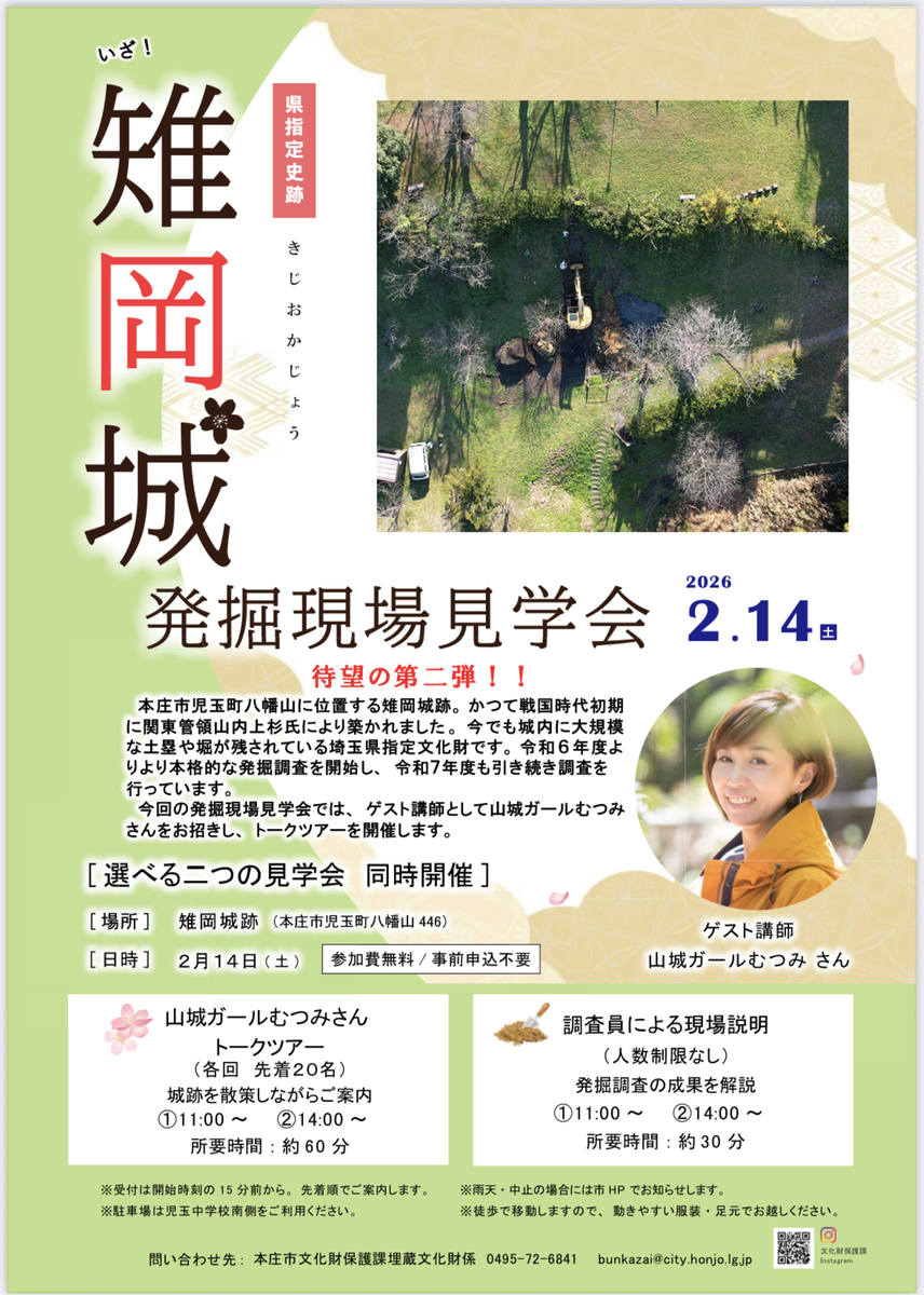 当日は調査員による現場説明のほか、山城ガールむつみさんによるトークツアーも予定されています。